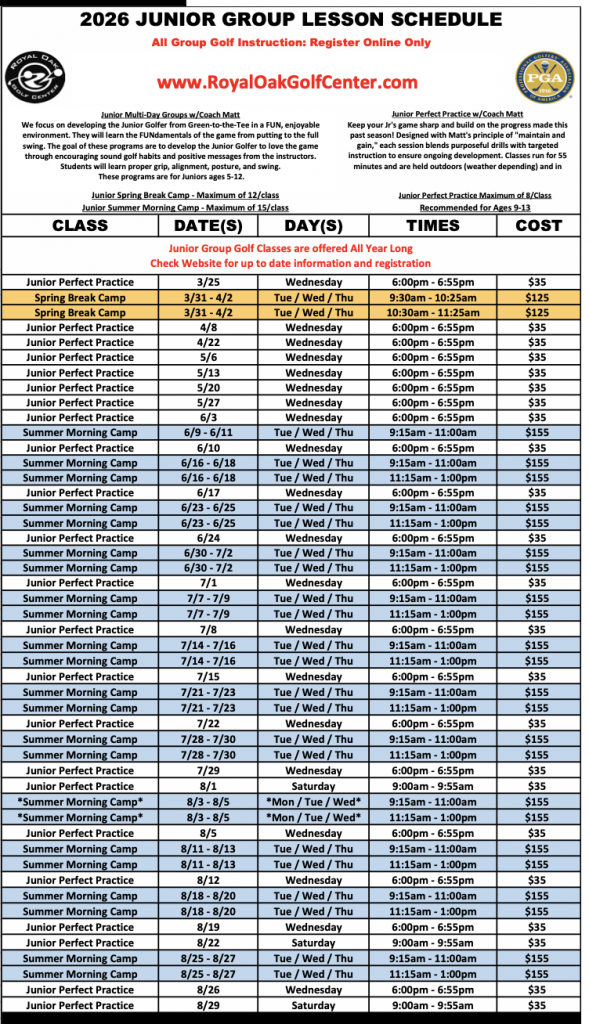 • Taught by Junior Golf Leader – Matt Berger